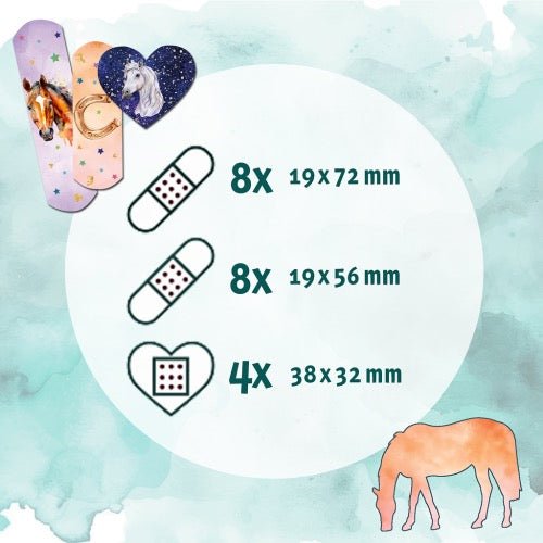 Die Pferde-Pflaster sind ideal für Kinder und Eltern, die im Alltag schnell handeln wollen: beim Spielen, Basteln, im Garten oder beim Toben. Sie sind praktisch für Schule, Kita, Freizeit oder unterwegs — und machen kleine Wehwehchen gleich ein bisschen schöner.