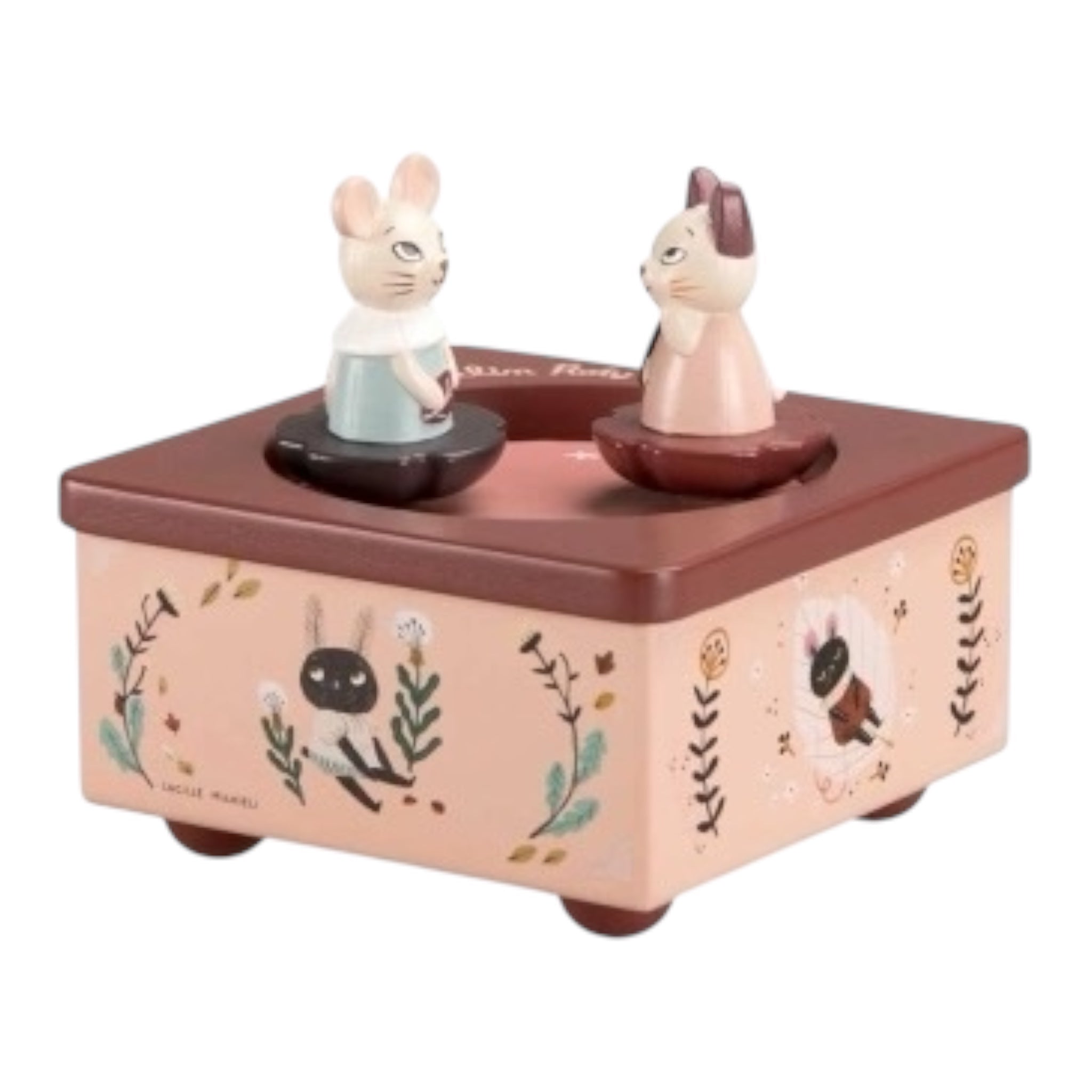 Die Holz Spieluhr Apres la Pluie von Moulin Roty begeistert mit zwei liebevoll gestalteten Figuren, die sich zur Melodie drehend bewegen. Durch das Aufsetzen der Figuren wird die Musik aktiviert. Eine poetische Spieluhr für ruhige Spielmomente, geeignet für Kinder ab 3 Jahren.