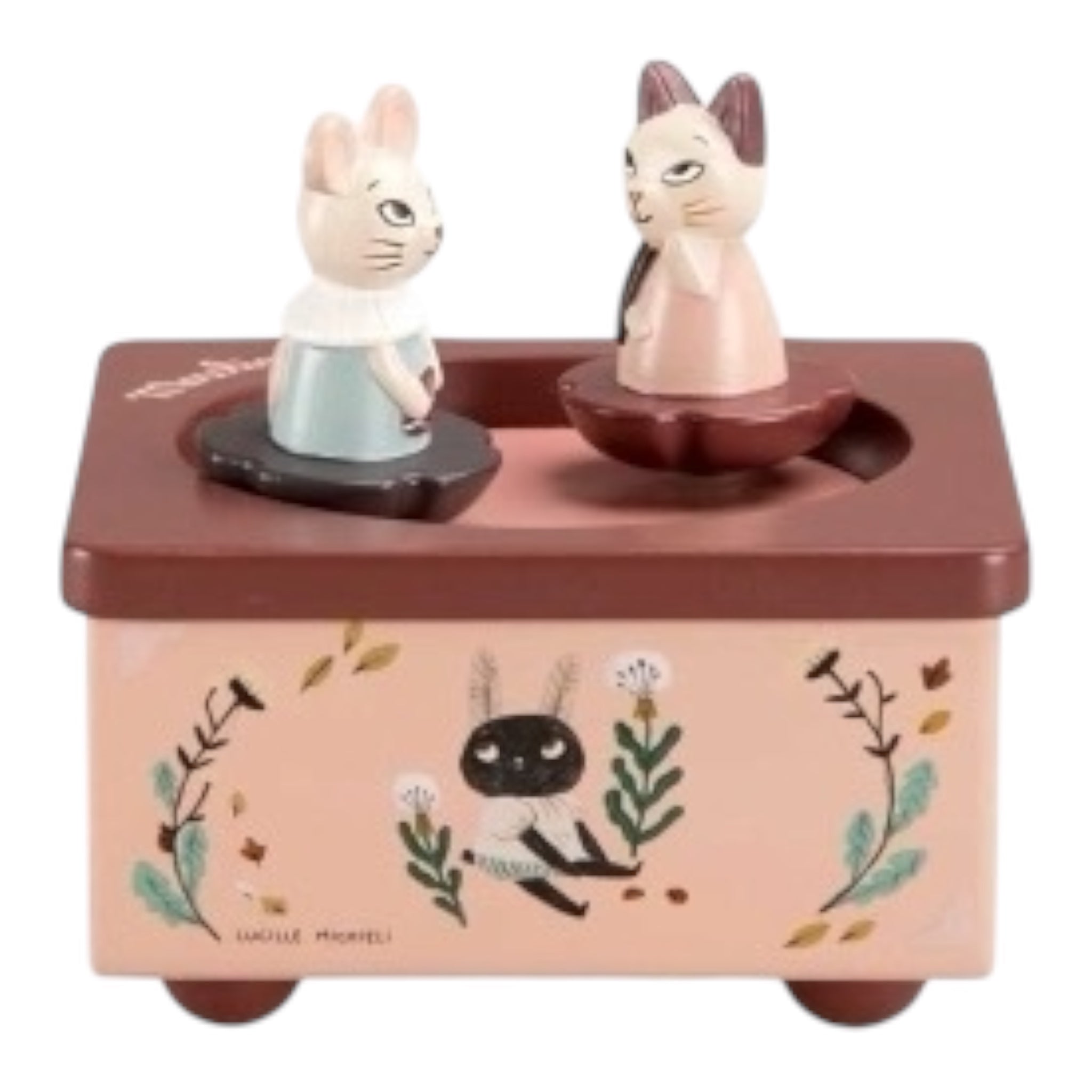 Diese Holz Spieluhr lädt Kinder ab 3 Jahren zum Beobachten, Staunen und Entdecken ein. Sobald die beiden Figuren aufgesetzt werden, beginnen sie sich zur Melodie zu drehen und zu tanzen. Das ruhige Zusammenspiel aus Bewegung und Musik vermittelt ein Gefühl von Ordnung und Wiederholung, das Kinder fasziniert und beruhigt.