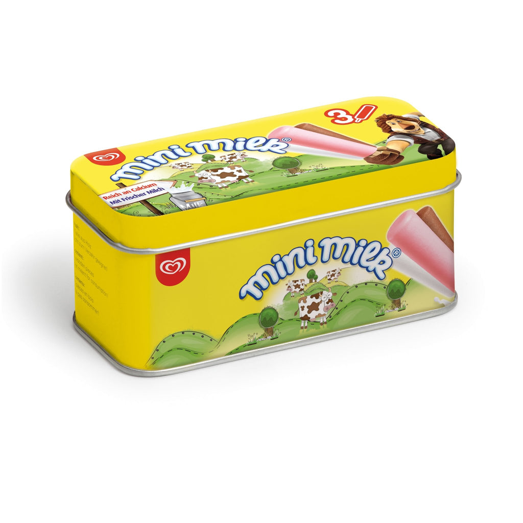 Die leckeren kleinen Milcheis am Stiel von Langnese in einer schön gestalteten Dose dürfen im Sortiment deines Kaufmannsladen nicht fehlen!