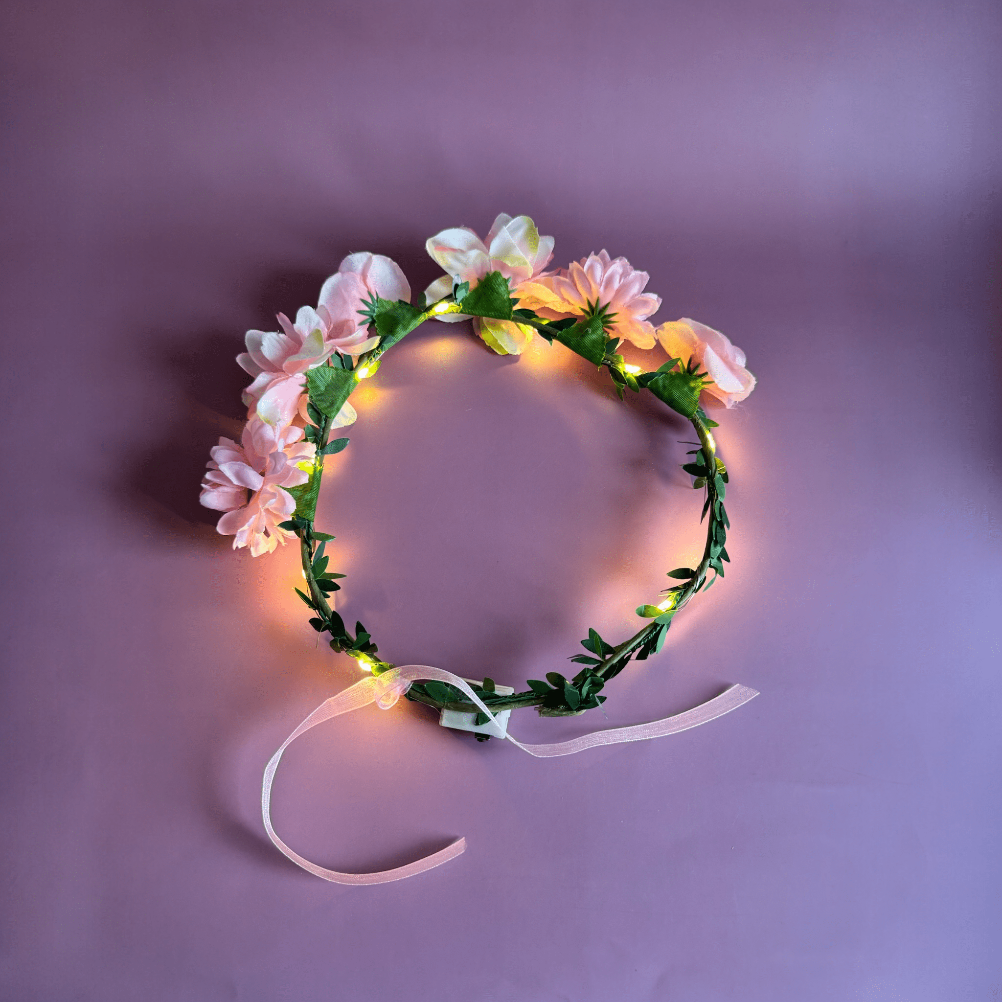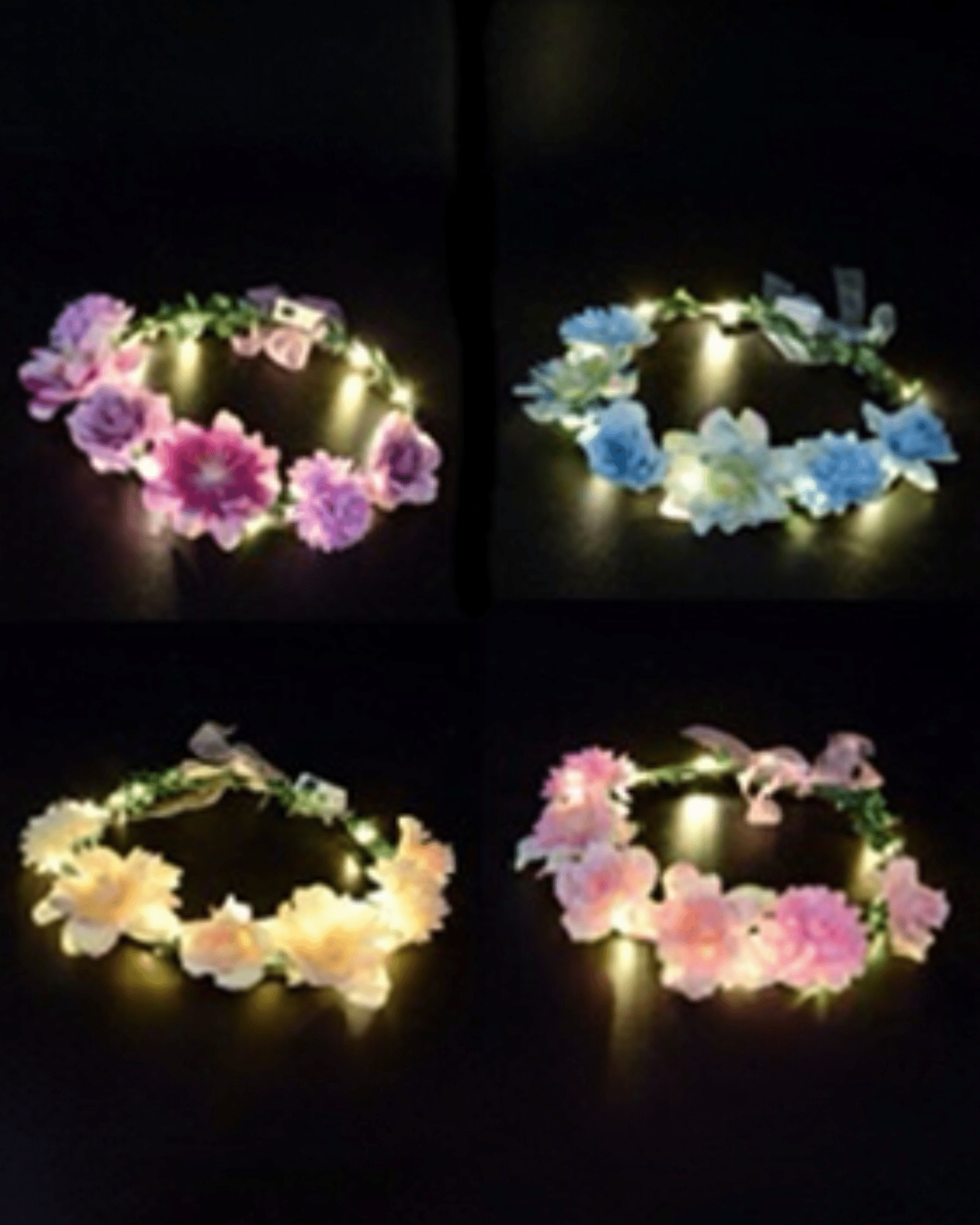 Leuchtender Haarkranz mit LED-Licht an farbigen Blüten