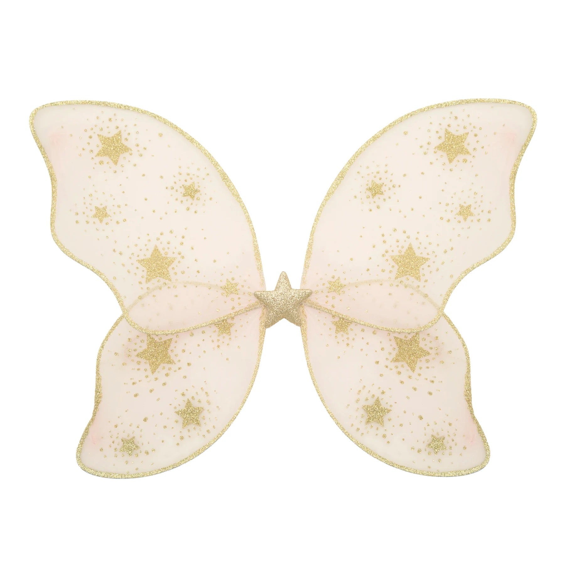 Träum dich in den Sternenhimmel: Die Starry Night Wings – Pink von Mimi & Lula sind zartrosafarbene Flügel mit goldglitzernden Sternen, gepolstertem Mittelstück und elastischen Trägern. Ideal zum Verkleiden, Spielen oder für fantasievolle Kostüme.