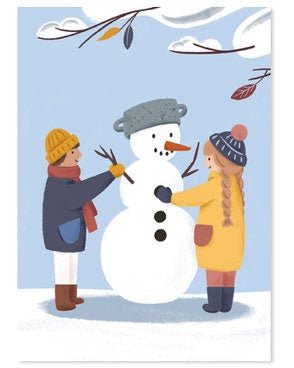 54 Illustration Postkarte Winter Schneemann und Kinder