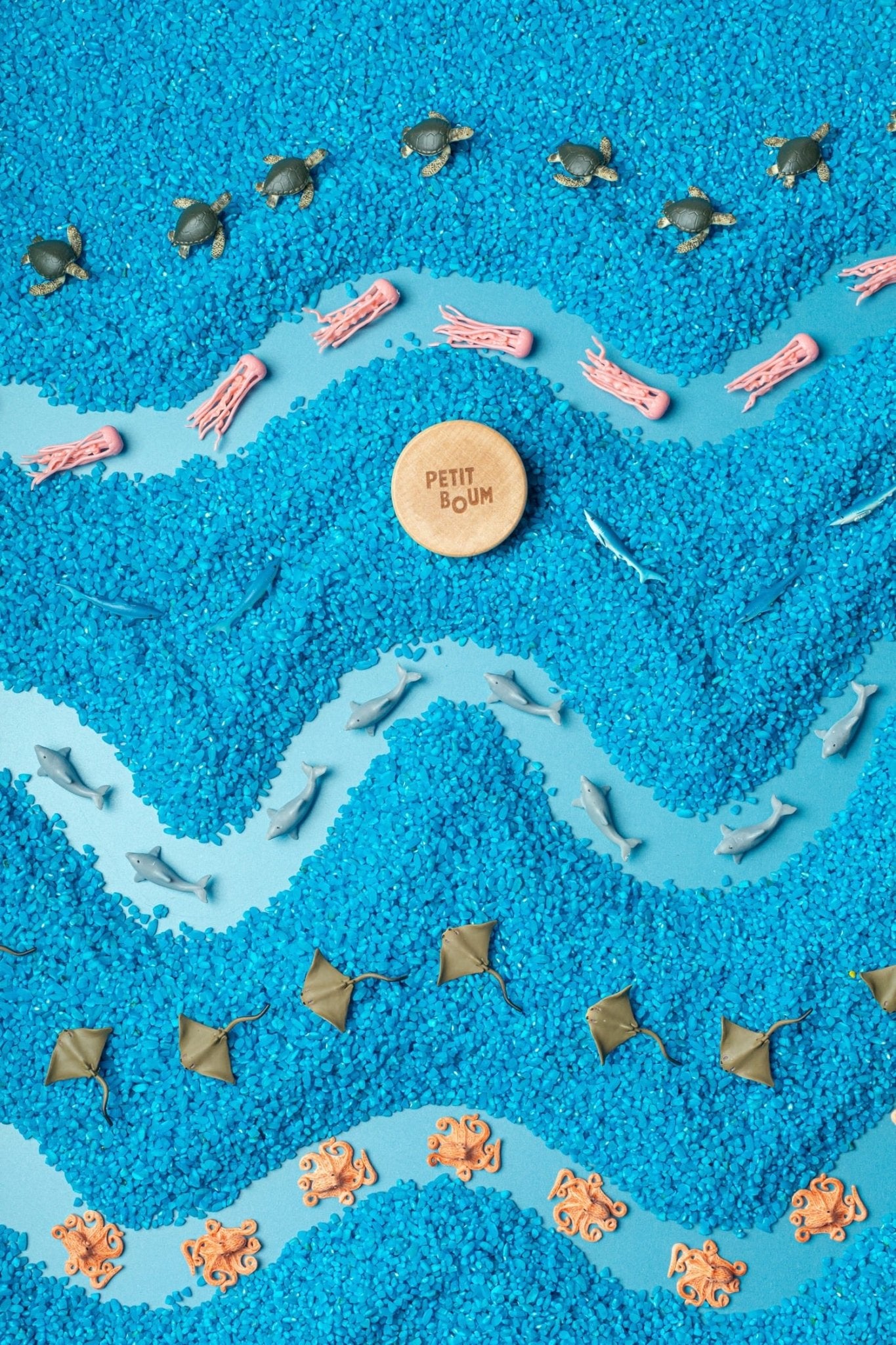 Die Spy Bottle Sea von Petit Boum entführt Babys ab 3 Monaten in eine Mini‑Ozeanwelt mit Quallen, Delfinen, Schildkröten und mehr. Perfekt zum Greifen, Entdecken und Staunen – ideal für sensorische Förderung, Fantasie und ruhige Momente.