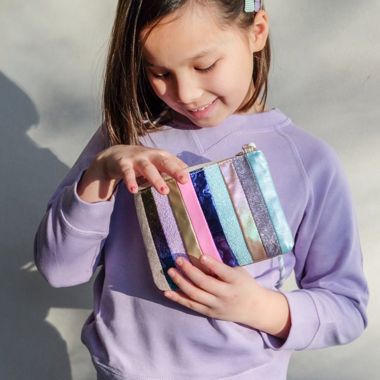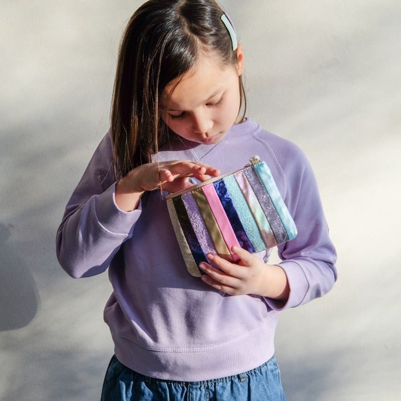 Bunte Umhängetasche von Mimi and Lula: weich, verspielt und ideal für kleine Schätze. Die Striped Dreamland Bag begleitet Kinder im Alltag, zu Ausflügen oder in den Kindergarten – farbenfroh, leicht und einfach zu tragen.