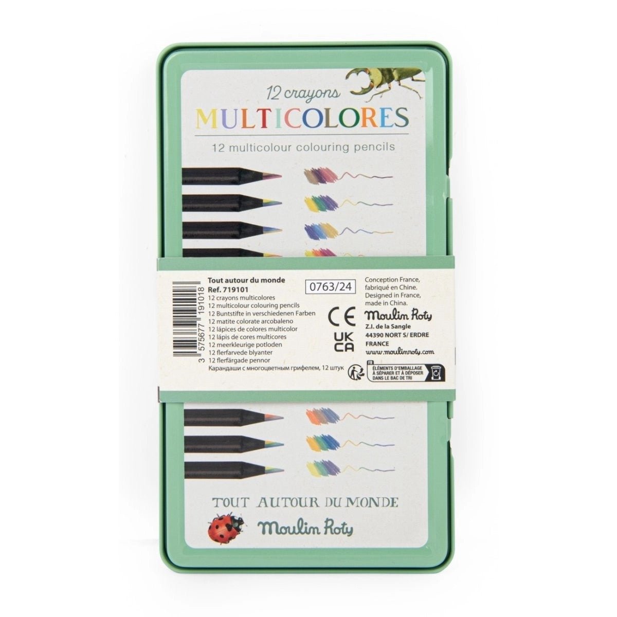 Moulin Roty 12 Mehrfarbige Buntstifte Set – Regenbogenstifte für Kinder
